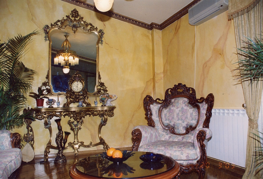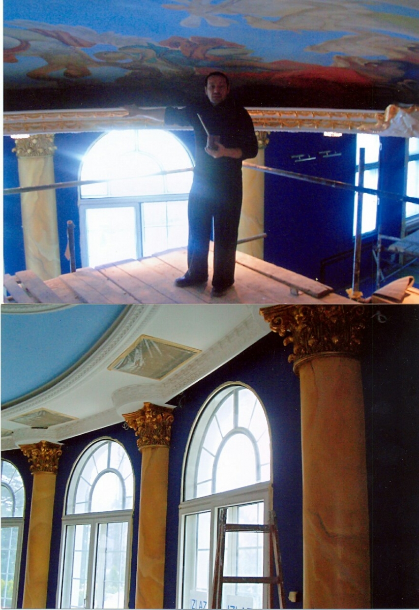 It is worth mentioning that he does the entire work using the methods applied in the past, that is, in ancient times, particularly when it comes to the interior design.  This equally applies to gold leaf gilding, different patinas, the wall or easel painting or interiors of different epochs: all that has to be preserved and there are few artists in Europe who learned the secret of these handcrafts.